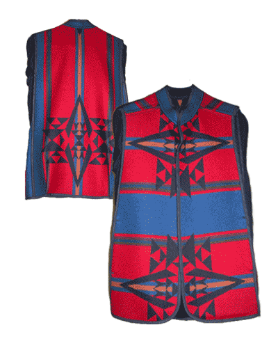 Vests made from Pendleton fabrics are reversible. Vests from other fabrics (wool blend, tapestry, fleece, chamois) are generally lined with soft "doe-suede" in a coordinating color. Denim vests may be lined with doe-suede, patterned chamois, or cotton print. (Contact us to discuss specifics.)